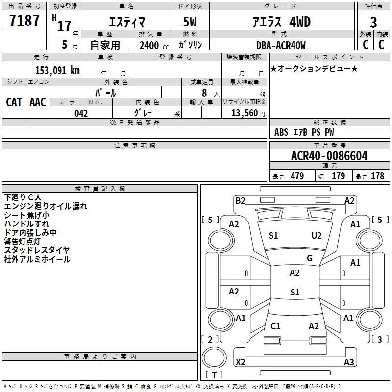 TOYOTA ESTIMA 2005 г., лот № 7187