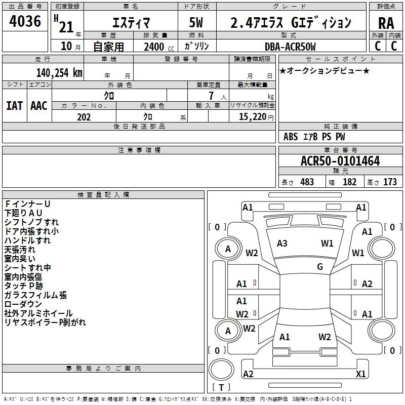 | AERAS | DBA-ACR50W | 2AZ-FE | FF | CVT | 2362cc | 170ps(125kW)/6000rpm | AИ-92 | 2 960 000 | |