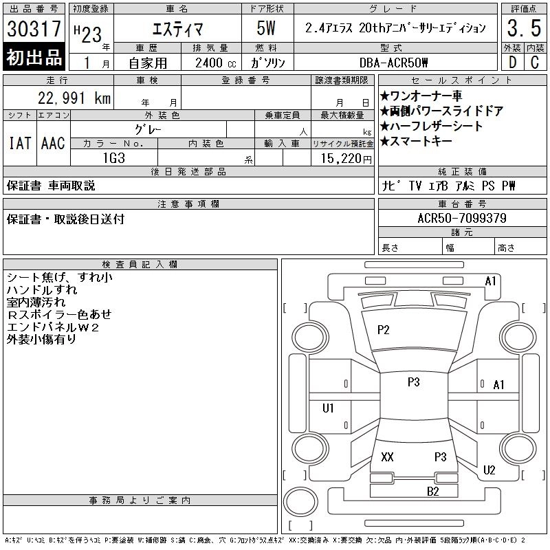 Год выпуска2011 Пробег 23 000 км КузовACR50W Комплектация2.4 AERAS 20TH ANNIVER ED