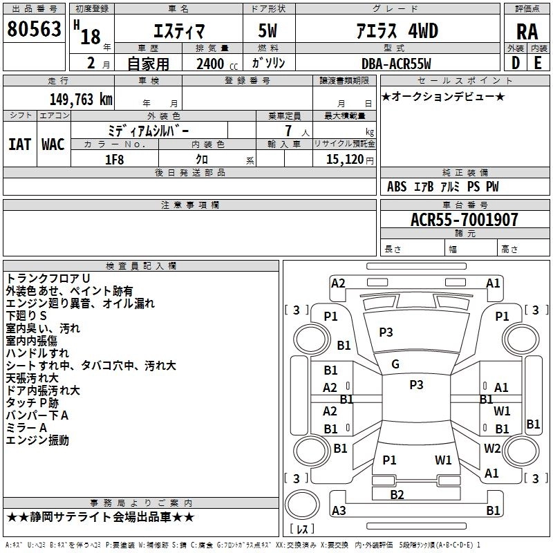 | AERAS | DBA-ACR50W | 2AZ-FE | FF | CVT | 2362cc | 170ps(125kW)/6000rpm | AИ-92 | 2 856 000 | |