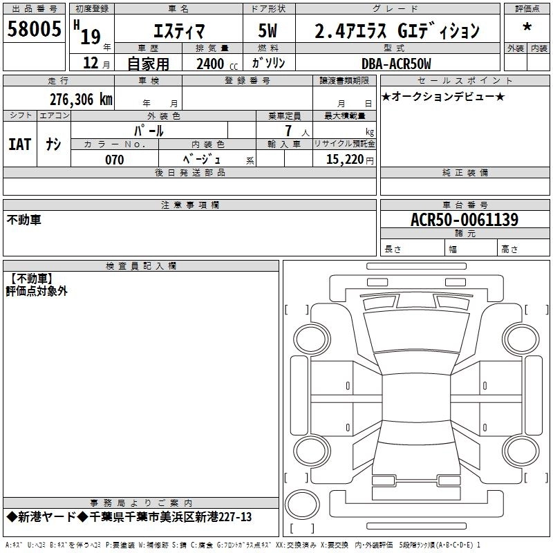 Статус выставлен на аукцион Лот 58005 Аукцион TAA Kantou Дата аукциона 19.03.2026