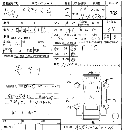 TOYOTA ESTIMA 2003 г., лот № 762