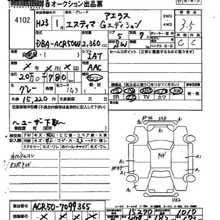 TOYOTA ESTIMA 2011 г., лот № 4102