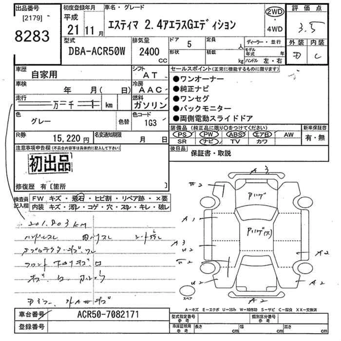 | AERAS | DBA-ACR50W | 2AZ-FE | FF | CVT | 2362cc | 170ps(125kW)/6000rpm | AИ-92 | 2 920 000 | |