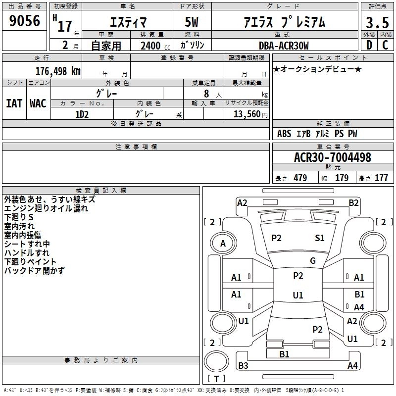 TOYOTA ESTIMA 2005 г., лот № 9056