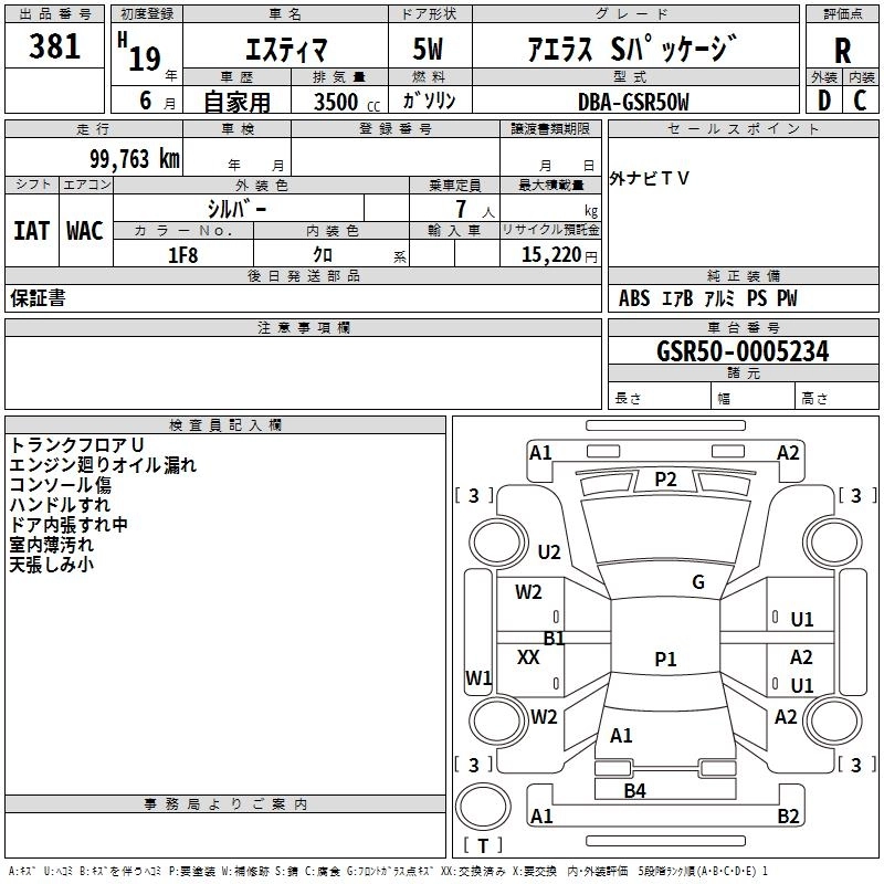 | AERAS | DBA-ACR50W | 2AZ-FE | FF | CVT | 2362cc | 170ps(125kW)/6000rpm | AИ-92 | 3 030 000 | |