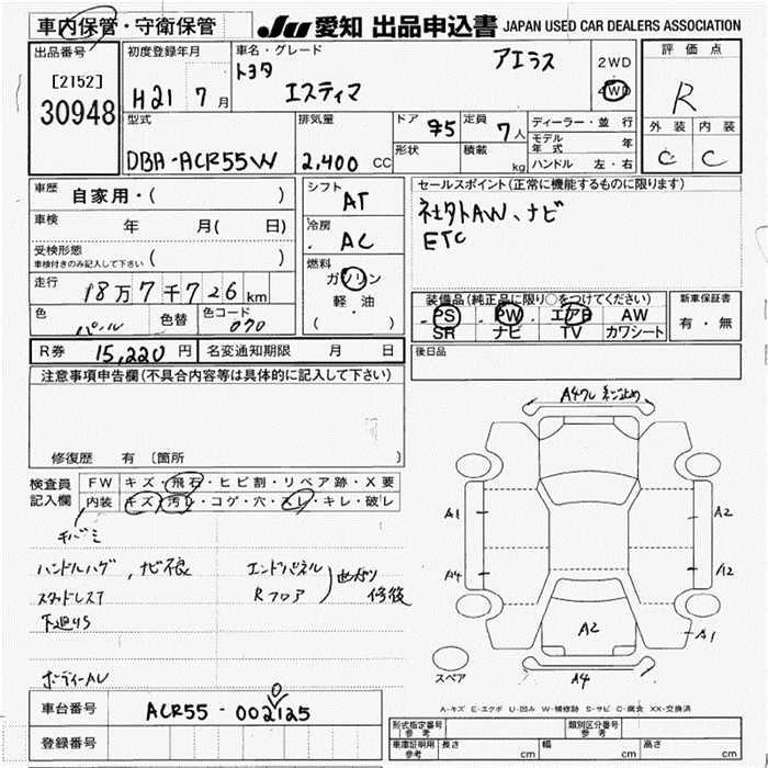 | AERAS | DBA-ACR50W | 2AZ-FE | FF | CVT | 2362cc | 170ps(125kW)/6000rpm | AИ-92 | 3 089 000 | |