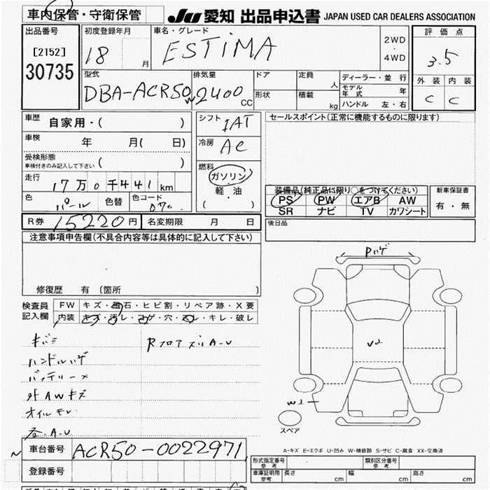 | AERAS | DBA-ACR50W | 2AZ-FE | FF | CVT | 2362cc | 170ps(125kW)/6000rpm | AИ-92 | 2 856 000 | |