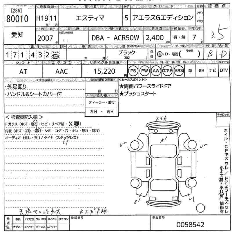 Год выпуска2007 Пробег 171 000 км КузовACR50W Комплектация AERAS G EDITION