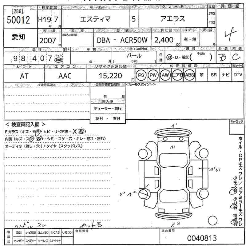 | AERAS | DBA-ACR50W | 2AZ-FE | FF | CVT | 2362cc | 170ps(125kW)/6000rpm | AИ-92 | 3 030 000 | |