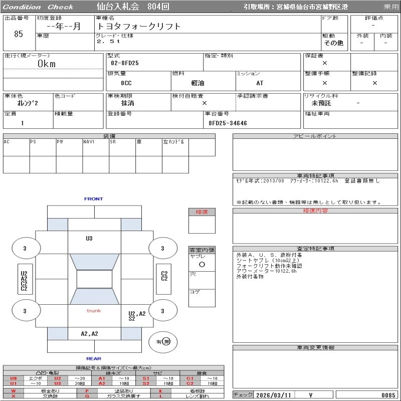 Статус выставлен на аукцион Лот 85 Аукцион ORIX Sendai Дата аукциона 17.03.2026
