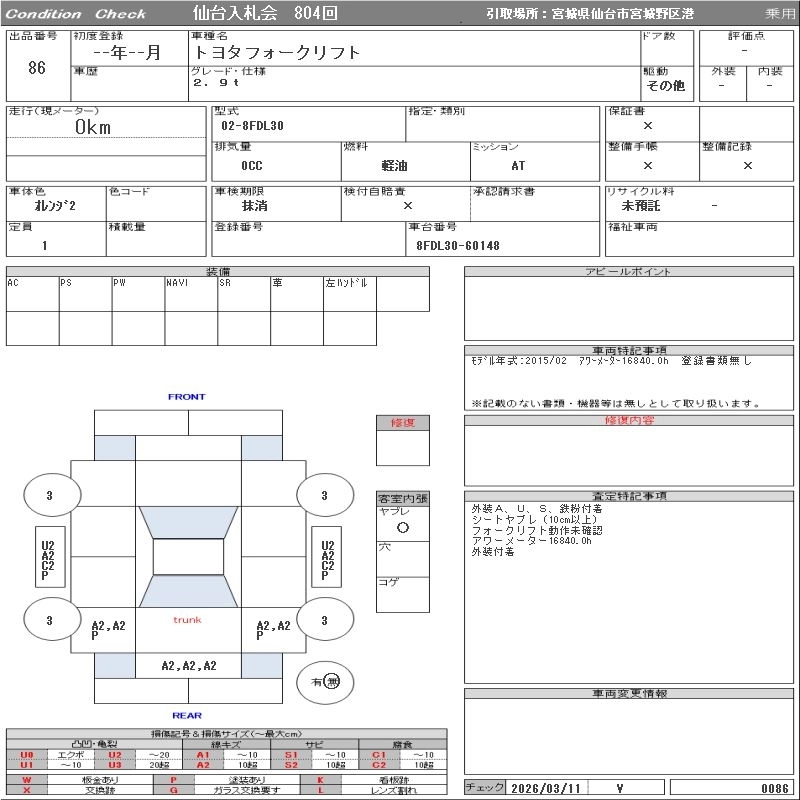 Статус выставлен на аукцион Лот 86 Аукцион ORIX Sendai Дата аукциона 17.03.2026