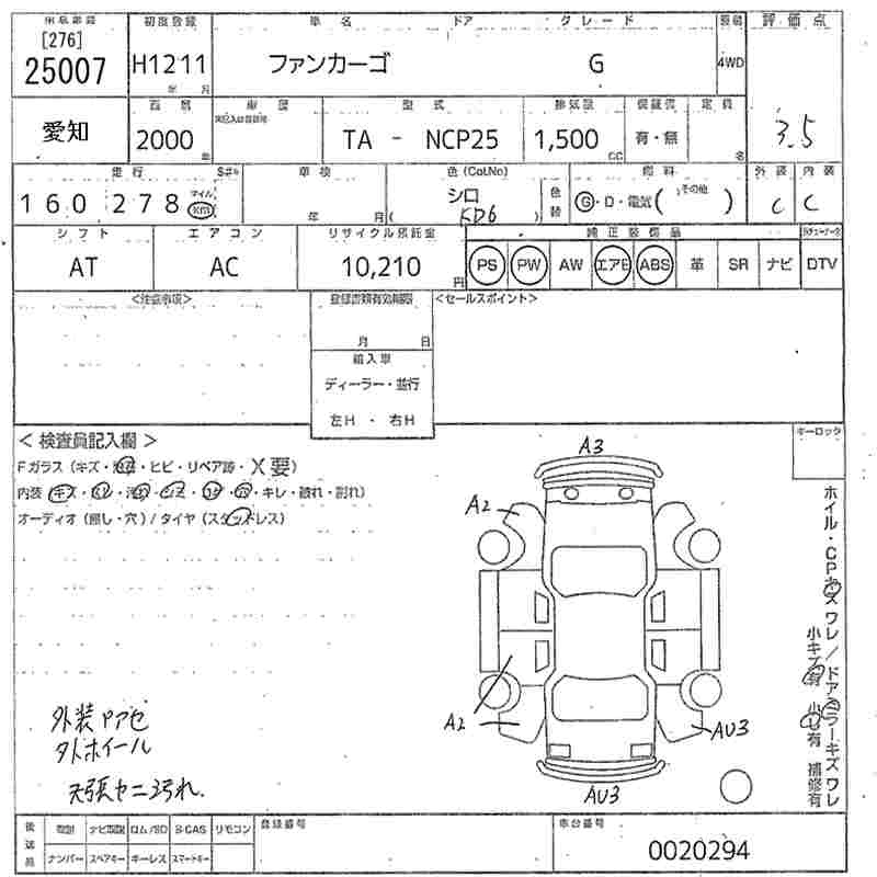 TOYOTA FUN CARGO 2000 г., лот № 25007