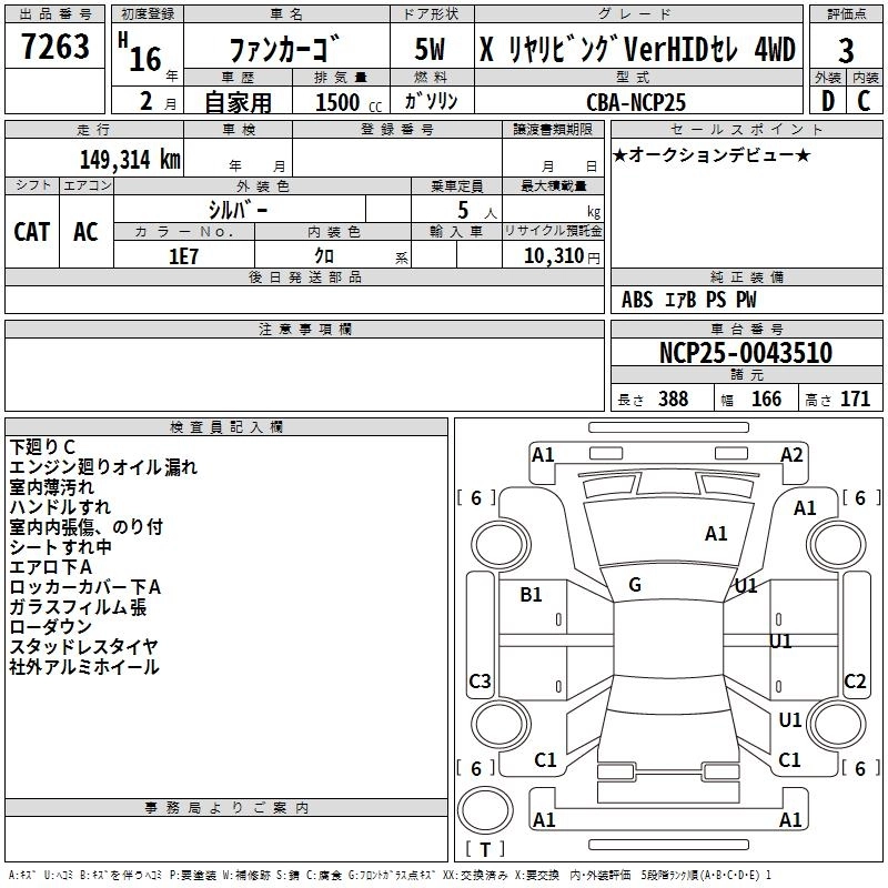 TOYOTA FUN CARGO 2004 г., лот № 7263