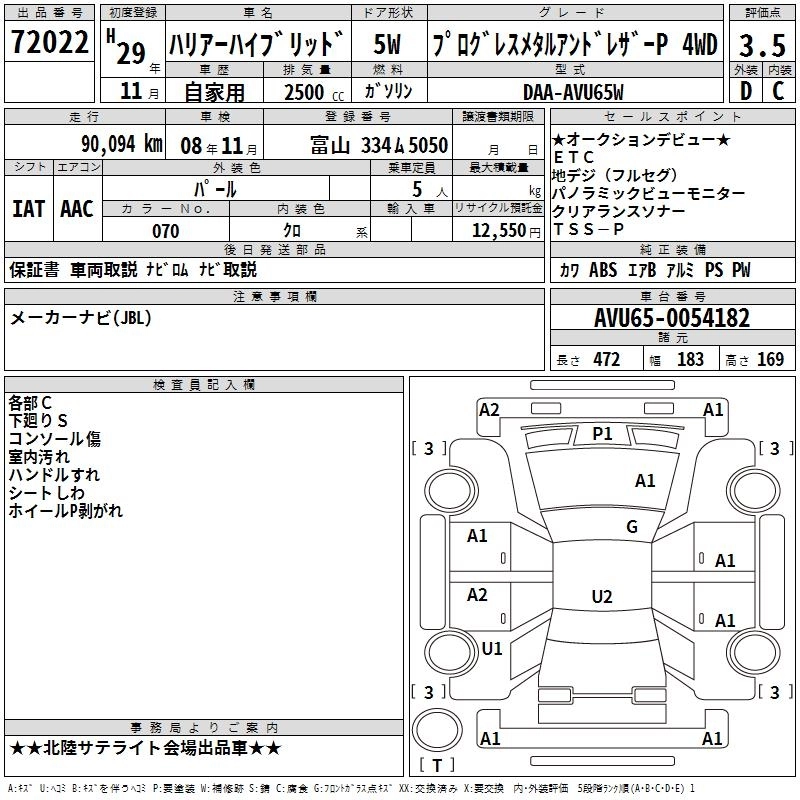 | PROGRESS METAL AND LEATHER PACKAGE | DAA-AVU65W | 2AR-FXE | Full-time 4WD | CVT | 2493cc | 152ps(112kW)/5700rpm | AИ-92 | 4 953 960 | |