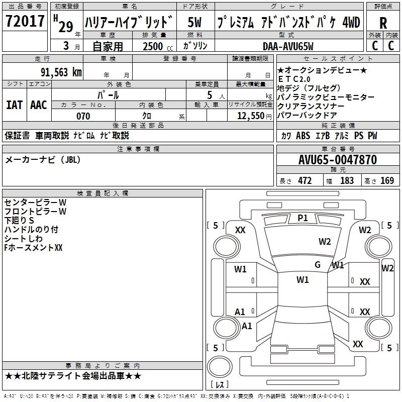 TOYOTA HARRIER HYBRID 2017 г., лот № 72017
