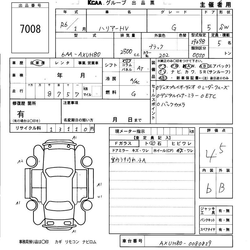 Статус не продан Лот 7008 Аукцион KCAA Fukuoka Дата аукциона 29.01.2026