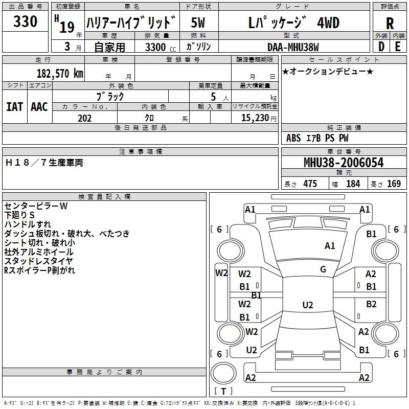 | L PACKAGE | DAA-MHU38W | 3MZ-FE | Full-time 4WD | CVT | 3310cc | 211ps(155kW)/5600rpm | AИ-95 | 4 410 000 | |