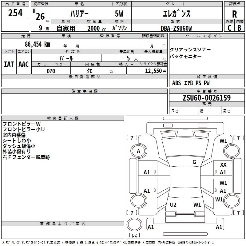TOYOTA HARRIER 2014 г., лот № 254