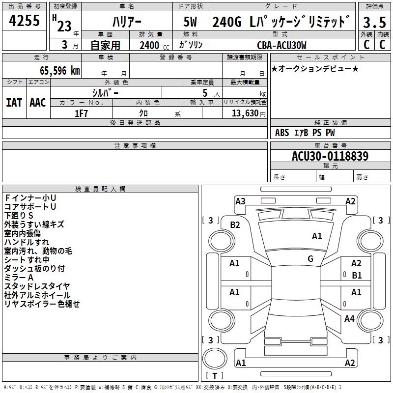 | 240G L PACKAGE ALCANTARA SELECTION | CBA-ACU30W | 2AZ-FE | FF | 4AT | 2362cc | 160ps(118kW)/5600rpm | AИ-92 | 2 750 000 |