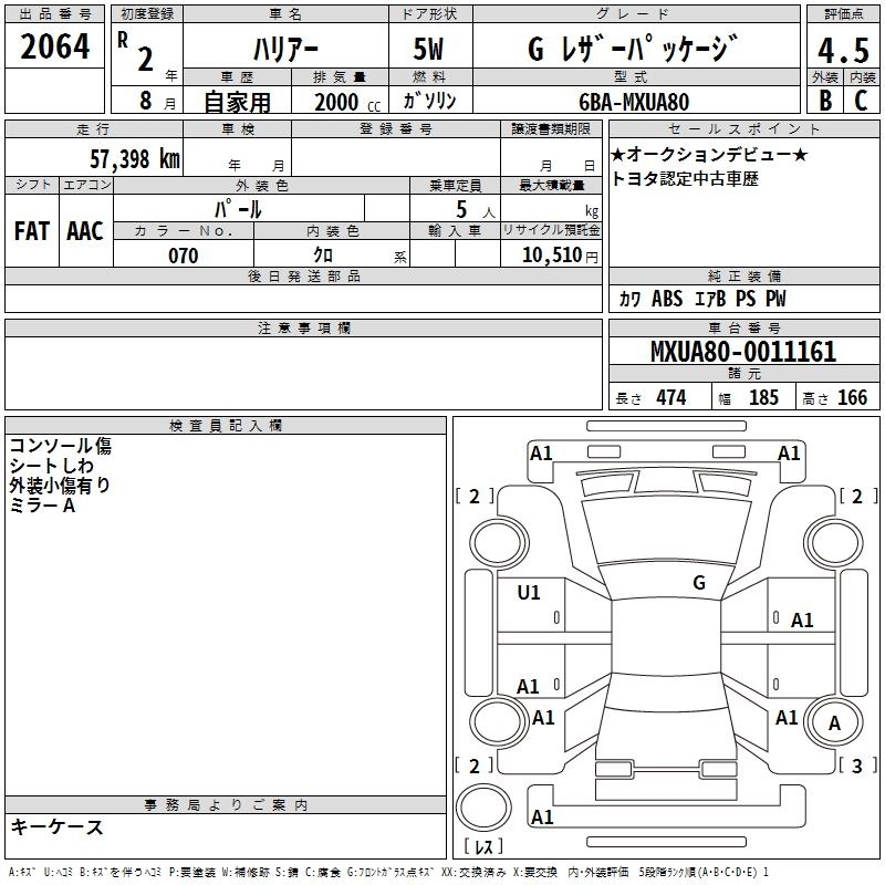 | G | 6BA-MXUA80 | M20A-FKS | FF | CVT | 1986cc | 171ps(126kW)/6600rpm | AИ-92 | 3 410 000 | |