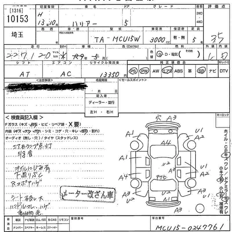 | 3.0 FOUR PRIME SELECTION | TA-MCU15W | 1MZ-FE | Full-time 4WD | 4AT | 2994cc | 220ps(162kW)/5800rpm | AИ-95 | 3 150 000 | |