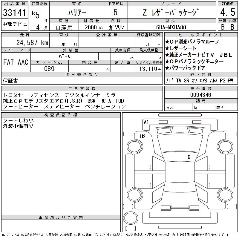 TOYOTA HARRIER 2023 г., лот № 33141