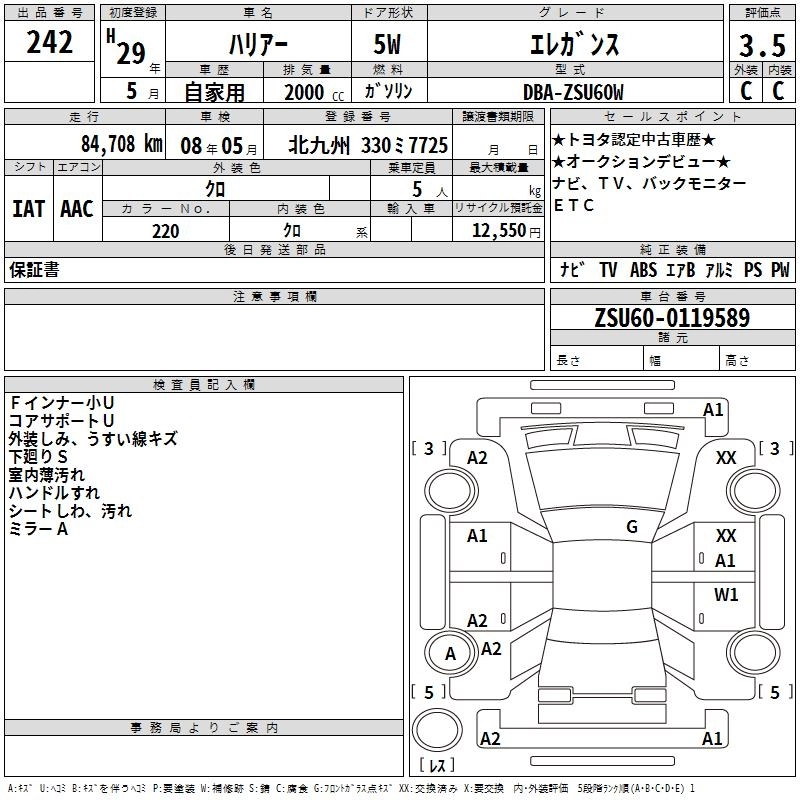 | ELEGANCE | DBA-ASU65W | 8AR-FTS | Full-time 4WD | 6AT | 1998cc | 231ps(170kW)/5200~5600rpm | AИ-95 | 3 574 800 | |