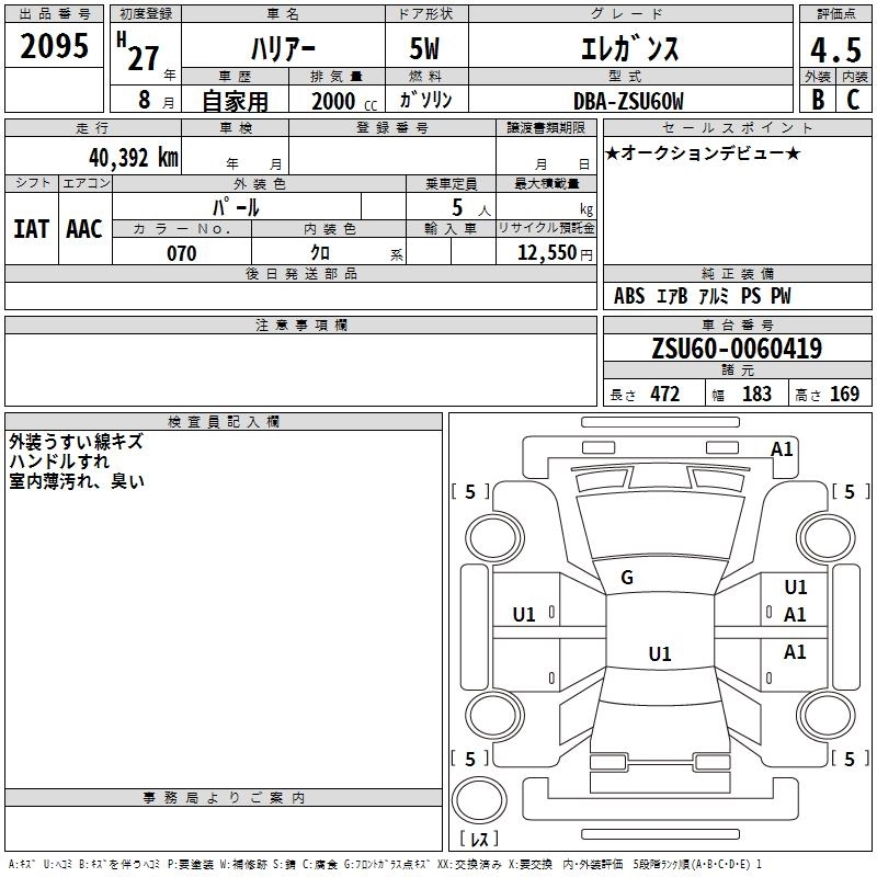 TOYOTA HARRIER 2015 г., лот № 2095