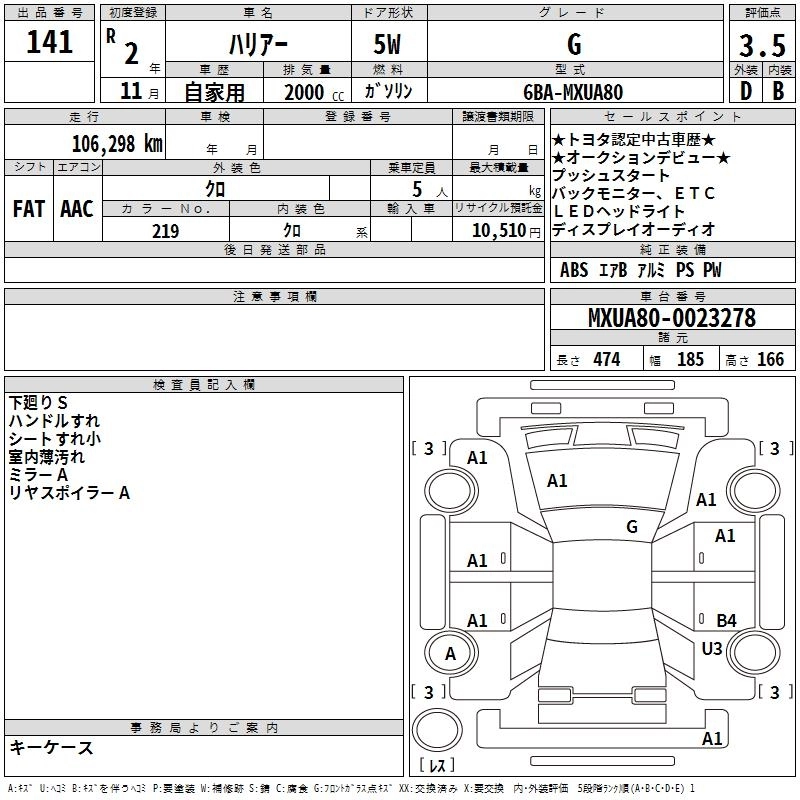TOYOTA HARRIER 2020 г., лот № 141