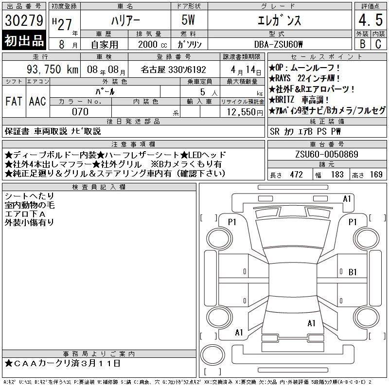 | ELEGANCE GS | DBA-ZSU65W | 3ZR-FAE | Full-time 4WD | CVT | 1986cc | 151ps(111kW)/6100rpm | AИ-92 | 3 485 455 | |