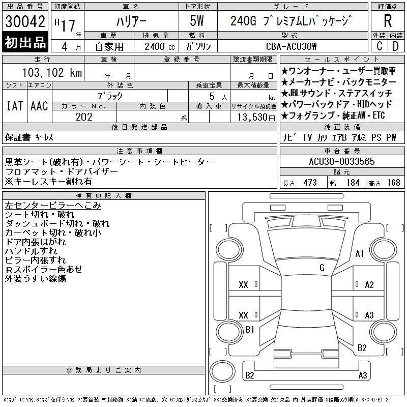 TOYOTA HARRIER 2005 г., лот № 30042