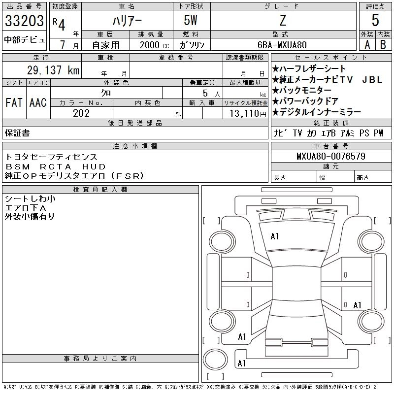 TOYOTA HARRIER 2022 г., лот № 33203