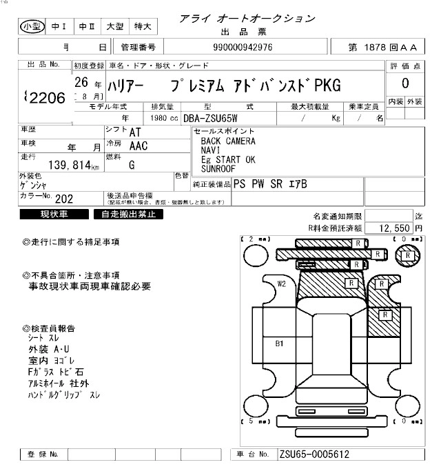 | GRAND | DBA-ZSU65W | 3ZR-FAE | Full-time 4WD | CVT | 1986cc | 151ps(111kW)/6100rpm | AИ-92 | 2 992 114 | |