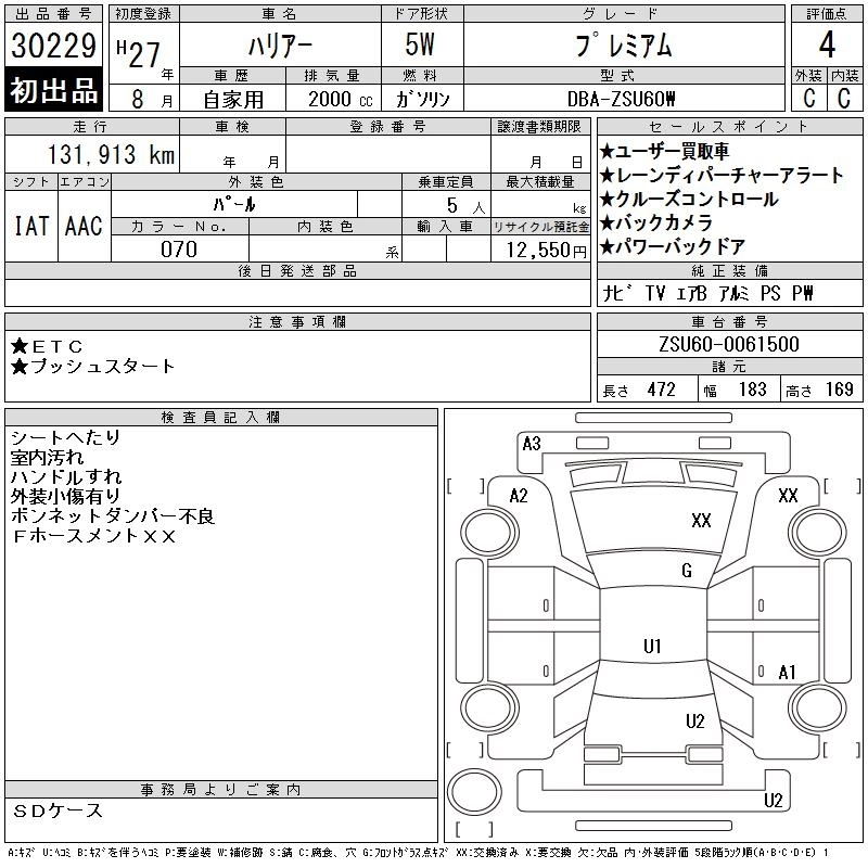PREMIUM DBA-ZSU60W 3ZR-FAE FF CVT 1986cc 151ps(111kW)/6100rpm AИ-92 3 137 143