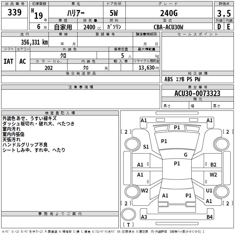| 240G | CBA-ACU30W | 2AZ-FE | FF | 4AT | 2362cc | 160ps(118kW)/5600rpm | AИ-92 | 2 667 000 |