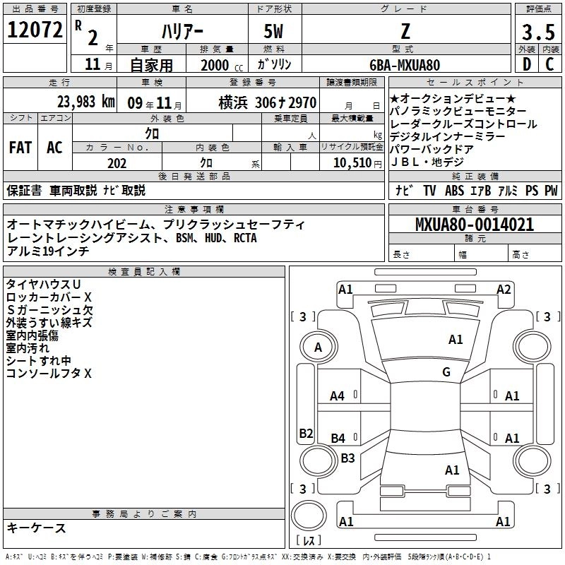 | Z LEATHER PACKAGE | 6BA-MXUA80 | M20A-FKS | FF | CVT | 1986cc | 171ps(126kW)/6600rpm | AИ-92 | 4 230 000 | |