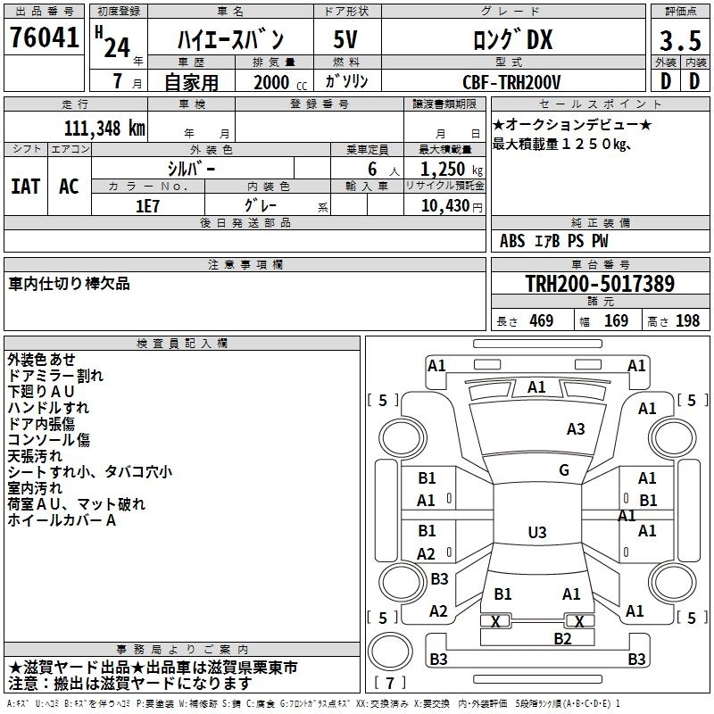 TOYOTA HIACE VAN 2012 г., лот № 76041