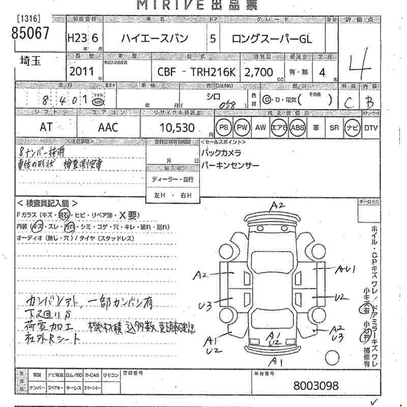 TOYOTA HIACE VAN 2011 г., лот № 85067