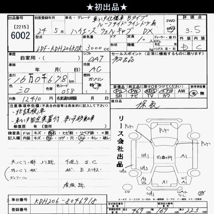 161 000 км КузовKDH206K Комплектация4WD DX WELL CAB KRU MY S USE CAR B TYPE