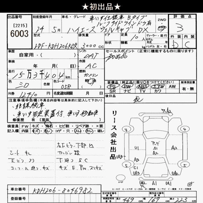 153 000 км КузовKDH206K Комплектация4WD DX WELL CAB KRU MY S USE CAR B TYPE