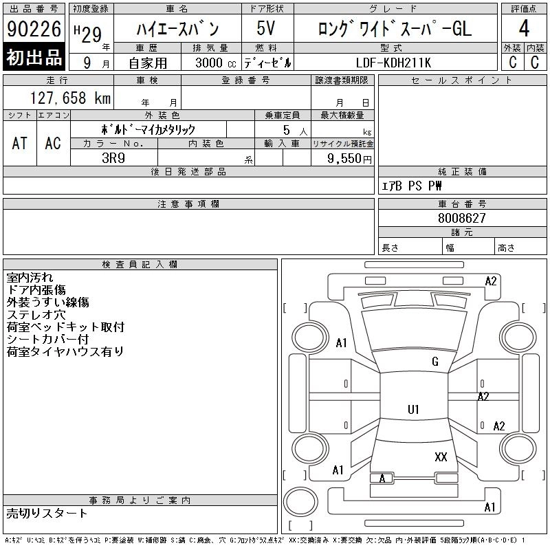 TOYOTA HIACE VAN 2017 г., лот № 90226