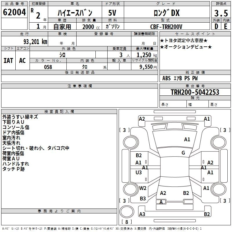 TOYOTA HIACE VAN 2020 г., лот № 62004