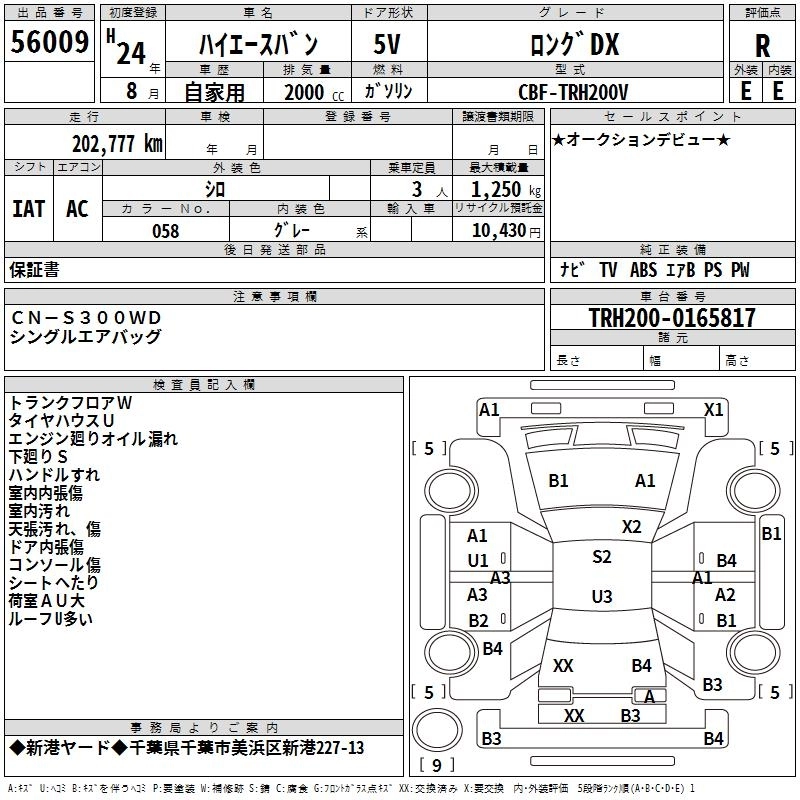 TOYOTA HIACE VAN 2012 г., лот № 56009