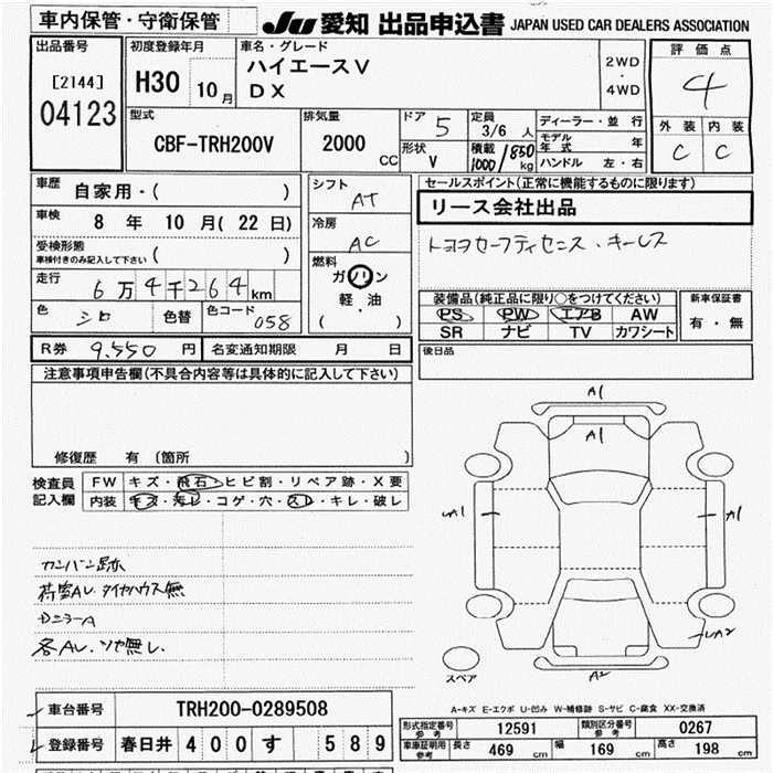 TOYOTA HIACE VAN 2018 г., лот № 4123