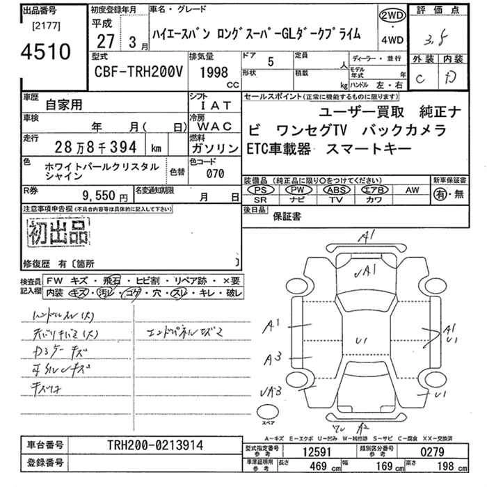 TOYOTA HIACE VAN 2015 г., лот № 4510