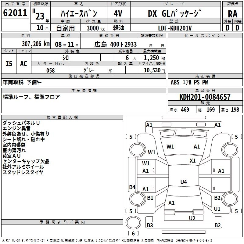 Год выпуска2011 Пробег 307 000 км КузовKDH201V КомплектацияDX GL PACKAGE