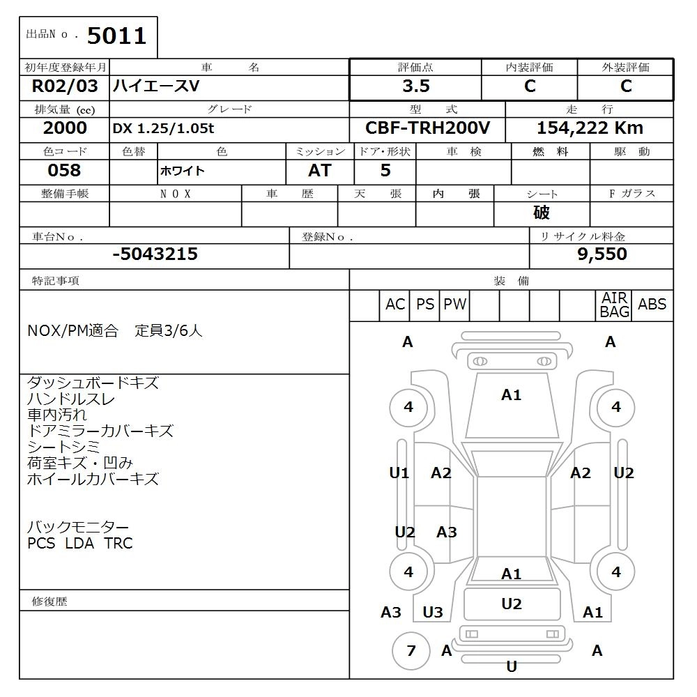 Статус выставлен на аукцион Лот 5011 Аукцион Nissan Osaka Дата аукциона 16.03.2026