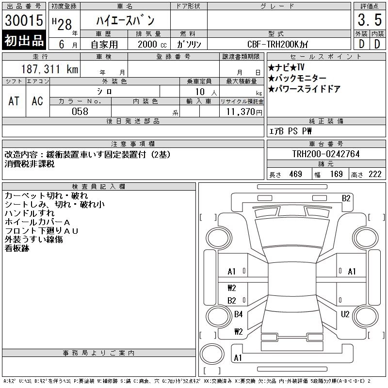 TOYOTA HIACE VAN 2016 г., лот № 30015