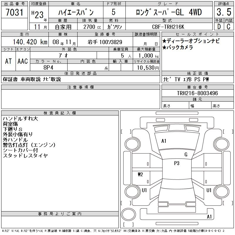 Год выпуска2011 Пробег 140 000 км КузовTRH216K Комплектация LONG SUPER GL 4WD